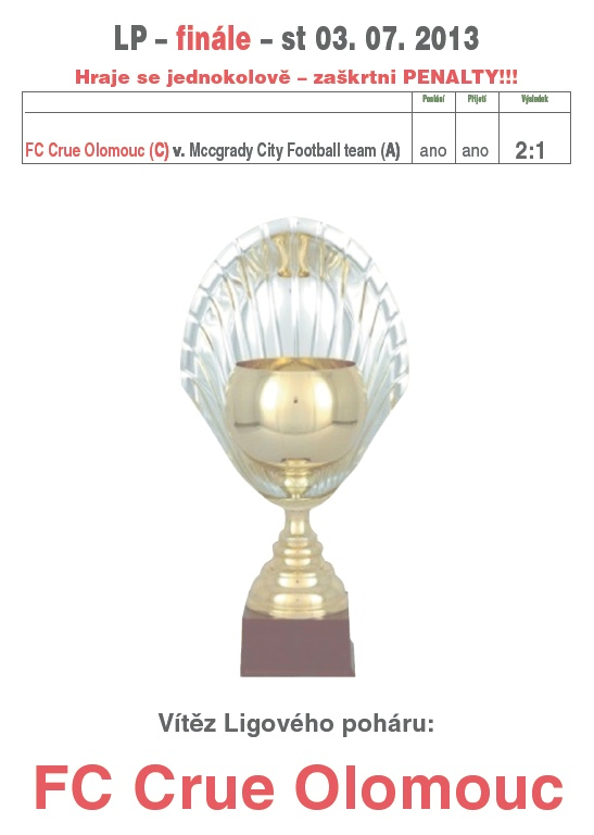 Termín - středa 3. 7. 2013 ve 22:00 - na jedno utkání s případným penaltovým rozstřelem při remíze
